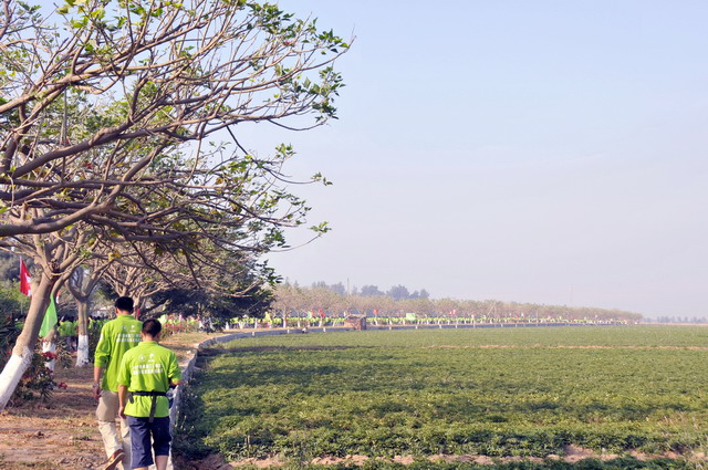 旗幟飄揚(yáng),千人象嶼團(tuán)隊(duì)分外引人注目。