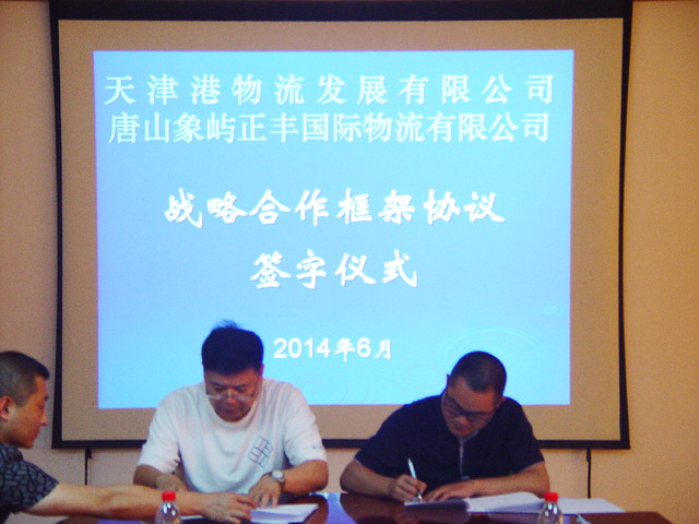 天津港物流趙明副總經(jīng)理與唐山象嶼正豐常務(wù)副總經(jīng)理陳輝代表雙方簽字