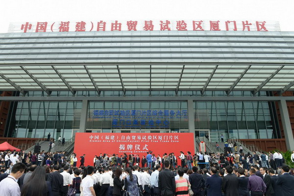 中國(guó)(福建)自由貿(mào)易試驗(yàn)區(qū)廈門(mén)片區(qū)在兩岸貿(mào)易中心舉行揭牌儀式