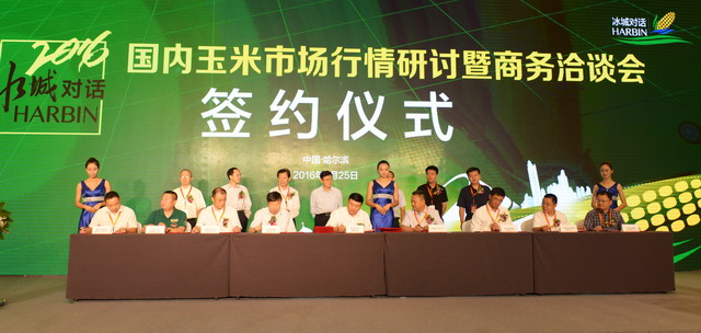 溝通、融合、創(chuàng)新、發(fā)展,在25日舉行的冰城對(duì)話——2016國內(nèi)玉米市場行情研討會(huì)暨商務(wù)洽談會(huì)共話玉米行業(yè)新政策、新市場、新思路、新格局。會(huì)議主辦方與承辦方共同牽線,實(shí)現(xiàn)龍江玉米與企業(yè)的產(chǎn)銷對(duì)接,為發(fā)育全國糧食大市場、促進(jìn)種糧農(nóng)民持續(xù)增收,推動(dòng)糧食產(chǎn)業(yè)全面振興起到積極作用。象嶼集團(tuán)作為此次會(huì)議的承辦方,積極貫徹落實(shí)國家玉米收儲(chǔ)制度改革重大部署,發(fā)揮大型國有糧食企業(yè)主力軍作用,助推龍江玉米市場化購銷,廈門象嶼集團(tuán)有限公司帶頭入市,董事長張水利代表象嶼與省糧食局簽訂玉米意向性購銷協(xié)議500萬噸。