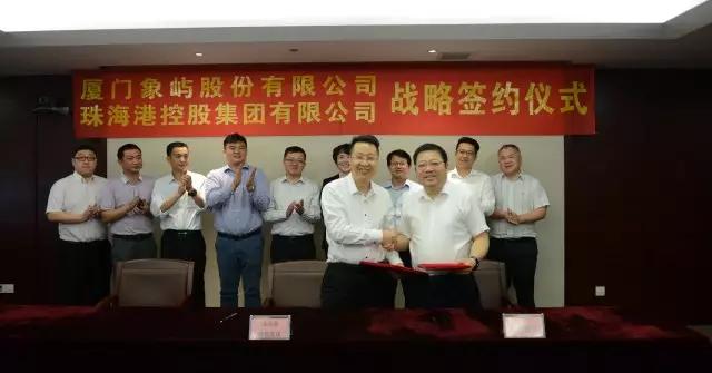 象嶼股份副總經(jīng)理程益亮、象嶼集團(tuán)投資發(fā)展總監(jiān)吳捷、象嶼股份物流管理中心總監(jiān)孫剛與珠海港控股集團(tuán)其他領(lǐng)導(dǎo)共同見(jiàn)證了簽約。